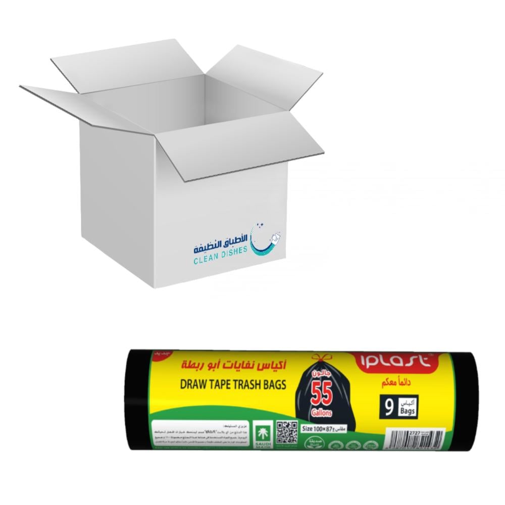 10 عبوات | اي بلاست | أكياس نفايات 55 جالون ( ابو ربطه ) - 9 اكياس