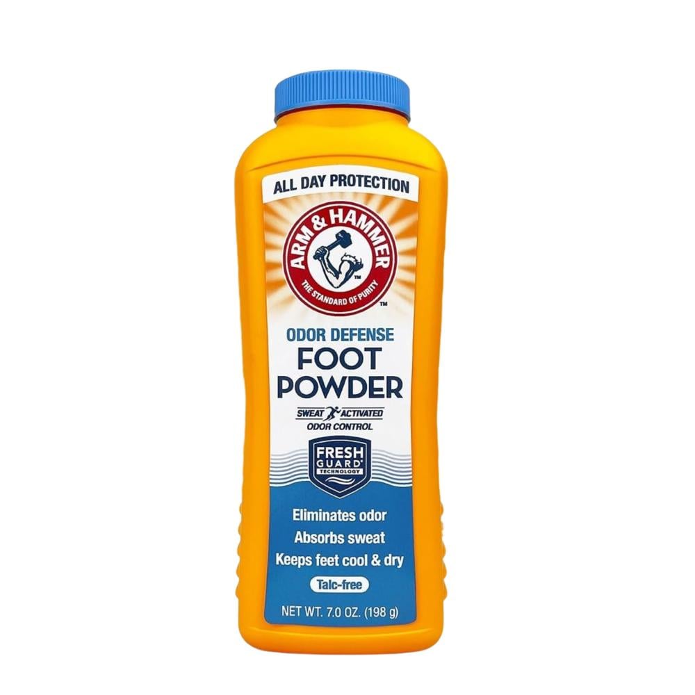 - ارم اند هامر بودرة قدم مصنوع من مواد آمنة تمامًا وخالية من التلك.