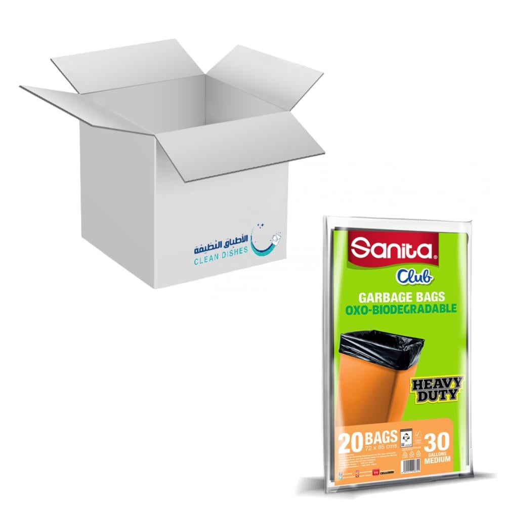 سانيتا اكياس نفايات 30 جالون تعد حلًا من الحلول المثالية تساعدك في التخلص من النفايات بطريقة آمنة وصحيحة. اكياس زبالة ٣٠ جالون على 20 كيس، فهي مصممة كي تتحمل جميع الاوزان الثقيلة وذلك بفضل خامتها ذات المتانة العالية والتي تقاوم التمزق. ويتم استخدام اكياس نفايات 30 جالون في المنزل وفي العمل، وذلك لأنها توفر راحة كبيرة وسهولة في الاستخدام كما تم تصميمها حتى يتم غلقها ولا تسرب اي روائح غير مرغوب فيها. احصل عليها الآن من الأطباق النظيفة.